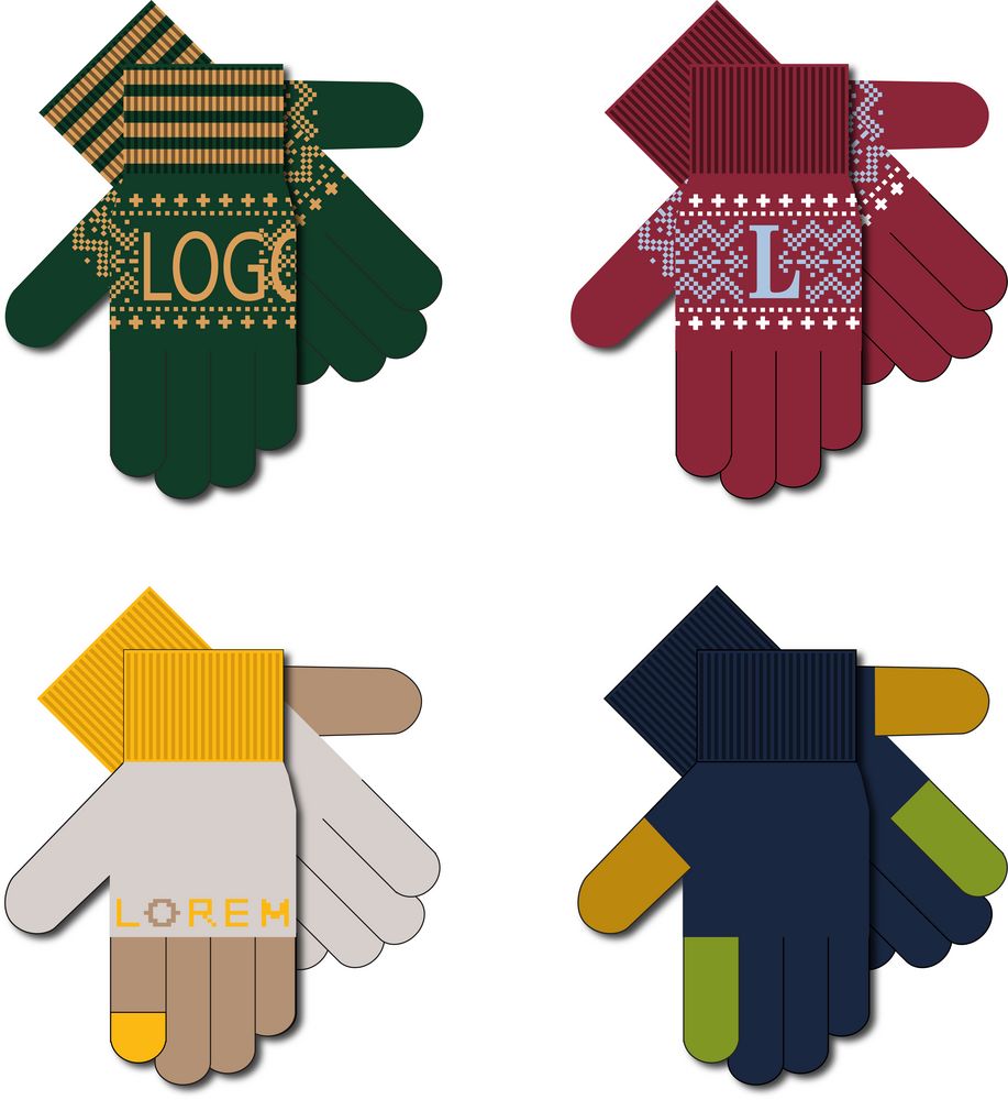 Модель: цельновязанные бесшовные перчатки с эластичной манжетой и жаккардовым узором в 2-3 цвета. Манжета может быть полосатой (горизонтальные полосы 1-2 цветов, без узора и логотипа).